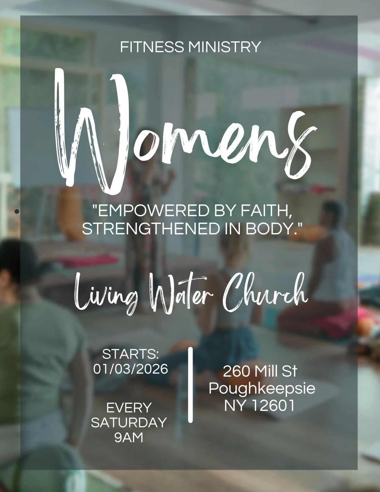 We will meet every Saturday at 9:00 AM, beginning January 3rd—just in time to beat those winter blues. This ministry is open to women ages 13 and up (ages 13–15 must be accompanied by a parent or guardian).